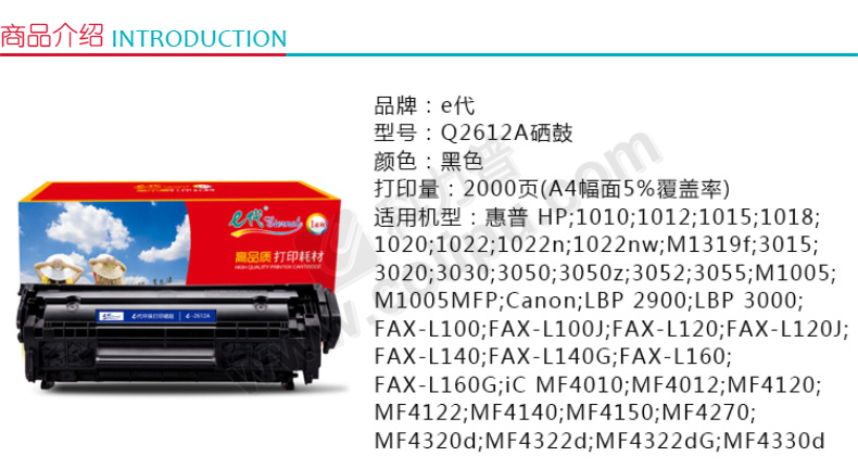 e代Q2612A硒鼓适用惠普12Ahp1020M1005碳粉10151018102230153020m1319f佳能303lbp2900CLPQ2612A硒鼓适用惠普12Ahp1020M1005碳粉10151018102230153020m1319f佳能303lbp2900 自营
